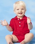 Cute creeper looks like daddy’s golf shirt, with a three- button placket.